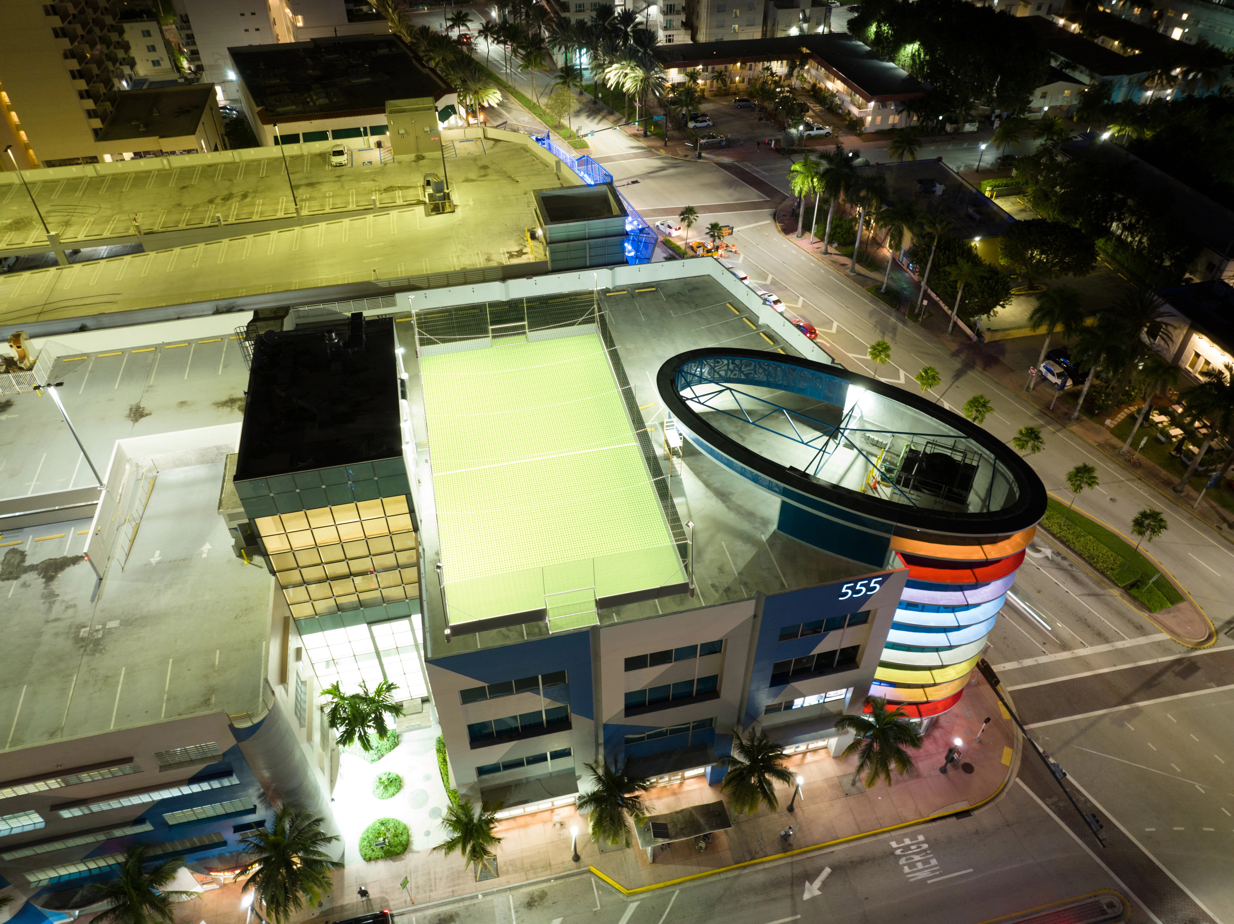 Miami Beach's only rooftop soccer field. 100×50 ft of premium turf, five stories up.